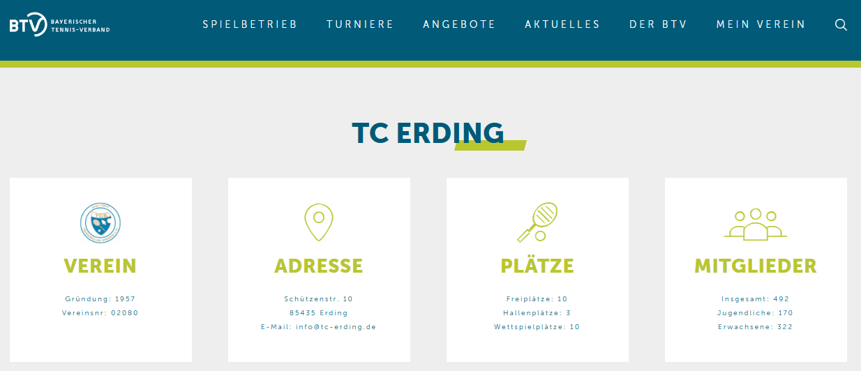 Auf der Homepage des Bayerischen Tennis-Verbands (BTV) findest du zahlreiche Informationen rund um den TC Erding.